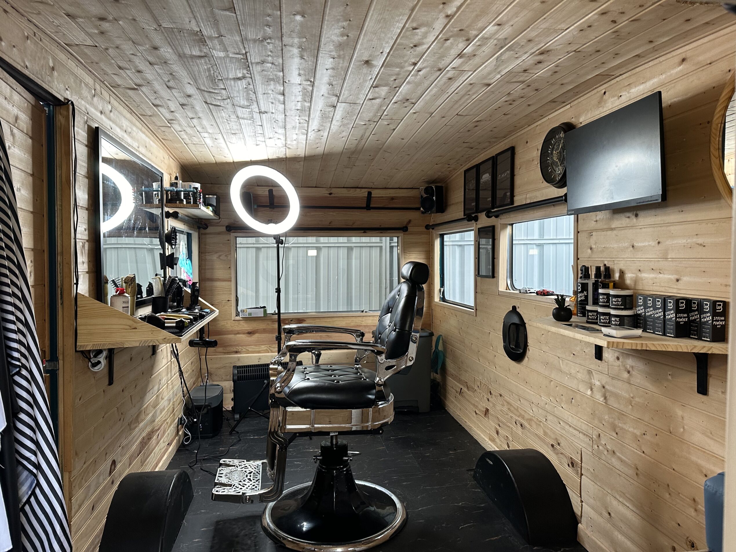 Take Off Barbershop est un concept de barber installé dans une caravane entièrement rénovée. Il propose un service de coiffure et de taille de barbe.